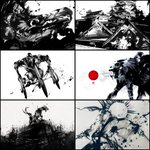 #上手いとか下手とかそういうのは関係なく自分が気に入っている絵を4枚選ぶ 1.. gateruler「黒河童の玄九郎」 2.. 発表ができなかった幻のパラリンピック陸上イラスト(元は動かす予定だったので腕の裏側、一部背筋等も描き込んでいます👀) 3..五道六誕(5周年記念絵) 4..因幡ノ白兎(リメイク)