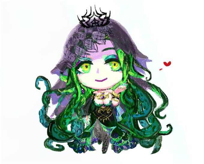 デフォルメミミカ様できた!デフォルメだから細かく描きこまなくてもいい気がすると思いながら描いてたけど、いろいろ難しすぎて発狂するかと思った😇 最終的にかわいく描けたので満足です!!! #ミミカリカチュア
