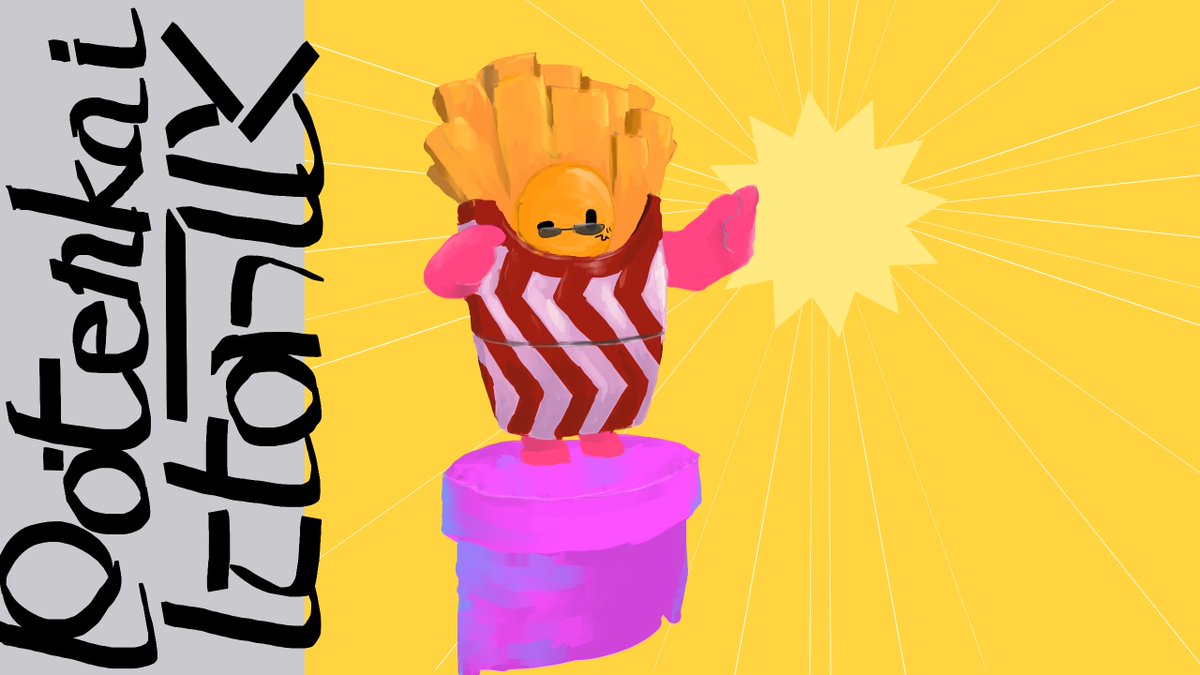 10 38 20万人記念合作に出した絵と動画で使った絵ですー!(※ポテトと曲名ロゴは一部トレスです) 素敵な動画に参加できてほんとによかったです!! #天絵画 21/01/02 19:39