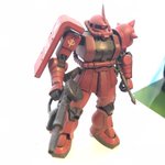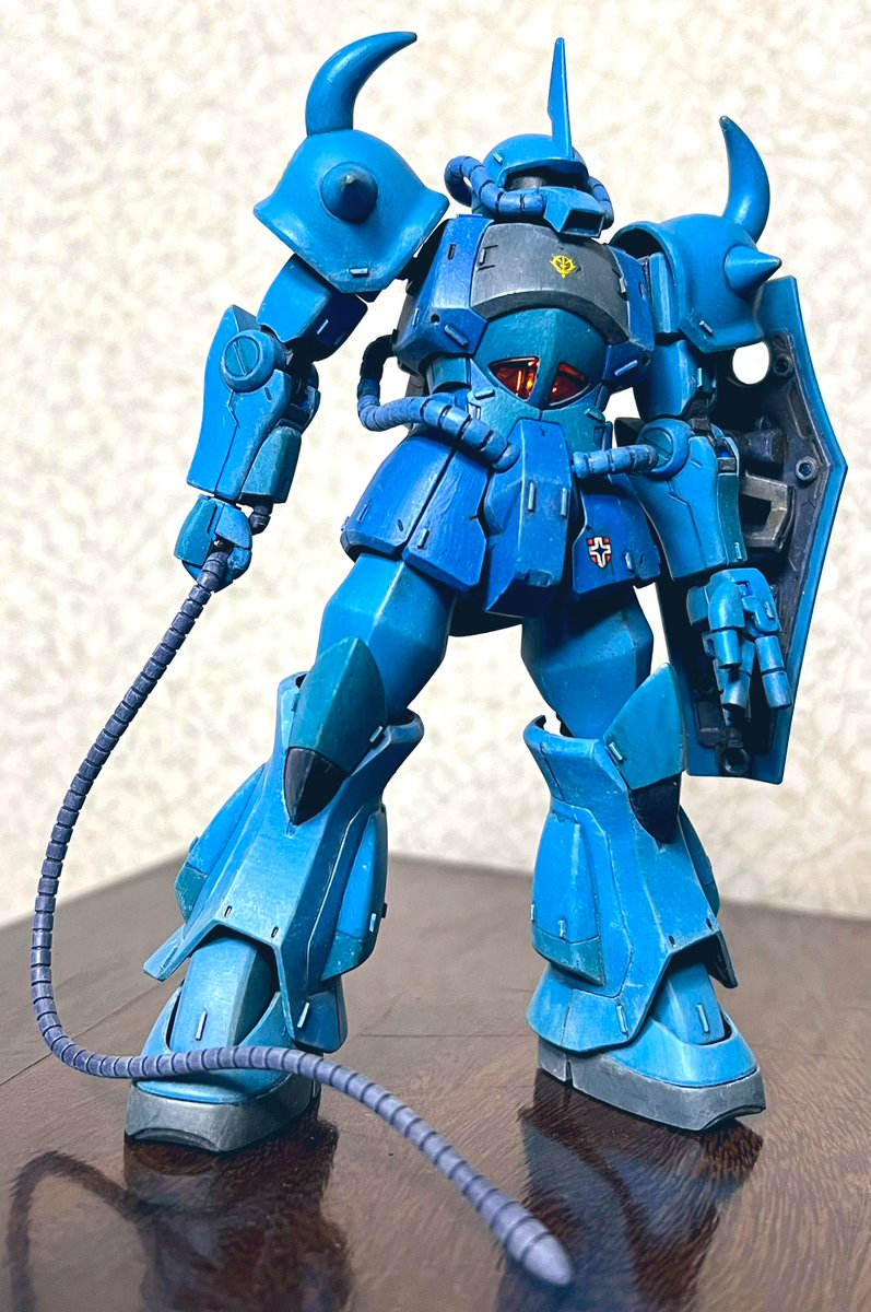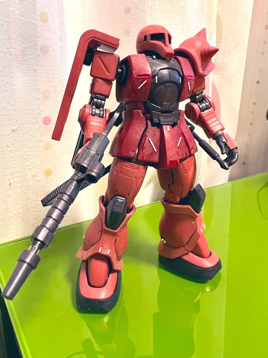 グフさん、カミさんの実家でデカール貼って、足元を中心に軽〜く砂埃の汚し入れたので、これで完成とします。 デカールでお分かりの通り、ラル大尉のグフのつもりです。 さてさて、GWは楽しみまくりますよっ‼️😝 #グフ #ガンプラ #ゴールデンウィークSNS展覧会2022