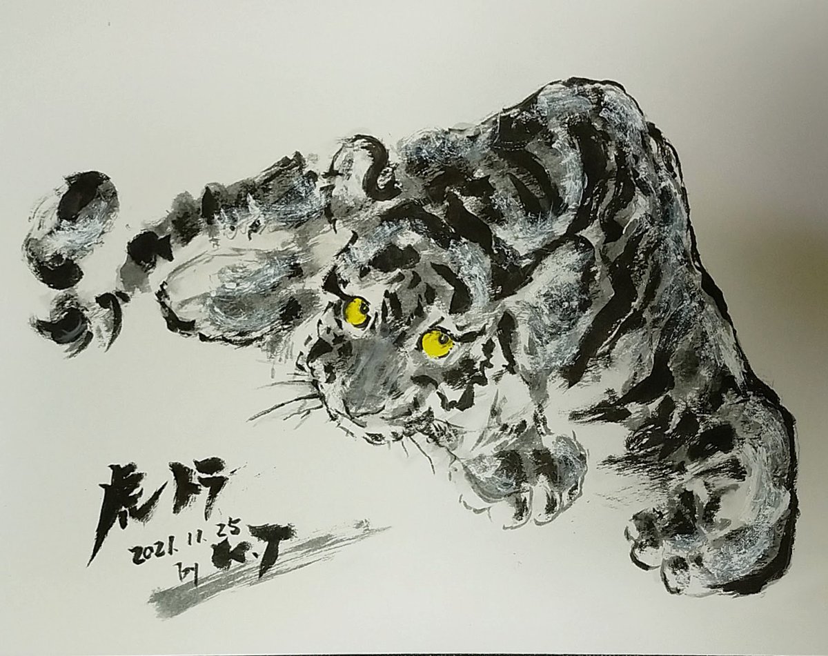 1 25 虎 トラ 筆ペンで描いてみた🤗 過去作品 #筆ペン画 #水墨画 #イラスト #デッサン #動物 #虎 #トラ #干支 22/12/17 19:24