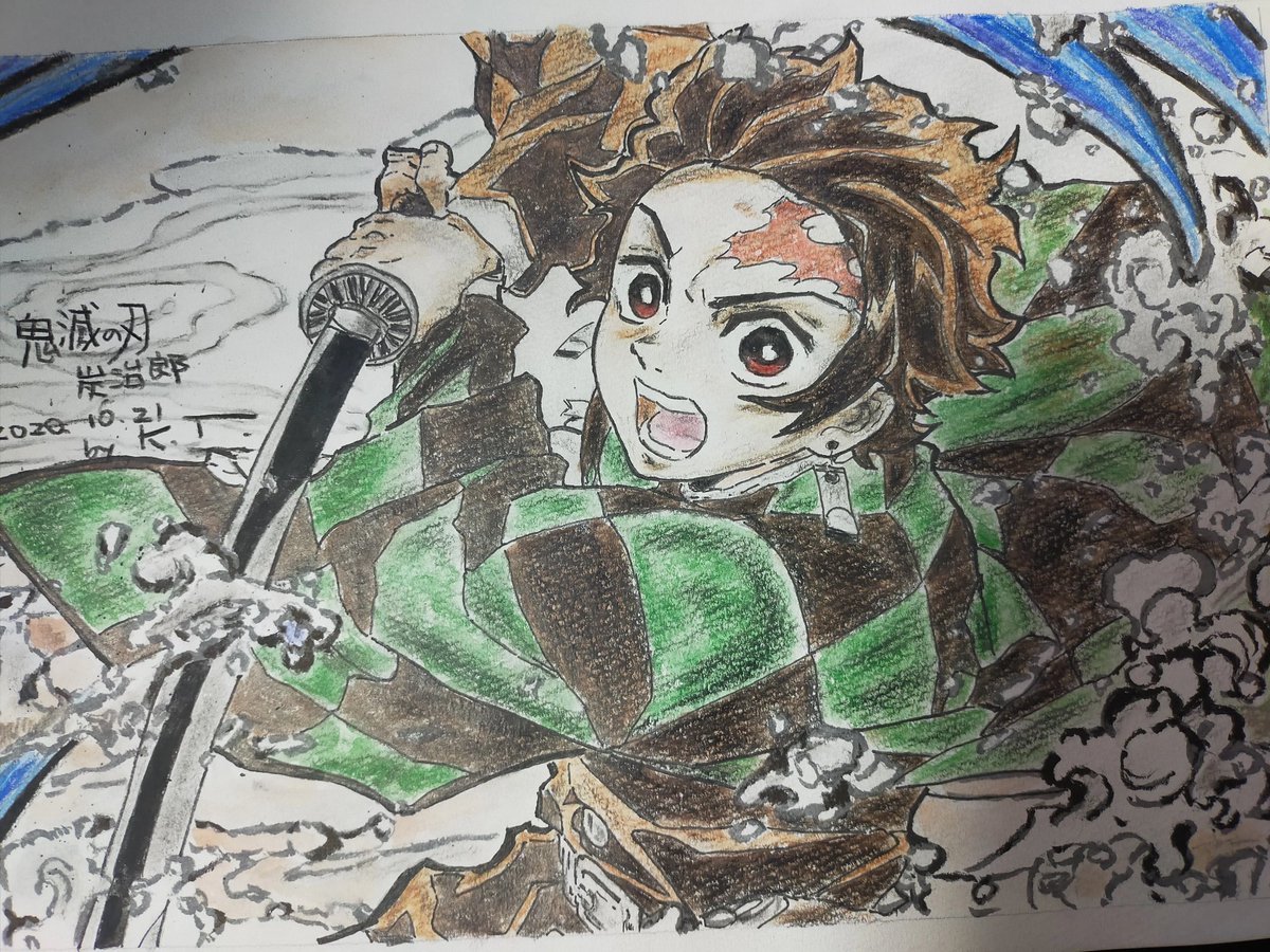 4 34 鬼滅の刃 竈門炭治郎 筆ペンと水彩色鉛筆で 描いてみた🤣過去作品 #筆ペン画 #水彩色鉛筆画 #色鉛筆画 #イラスト #デッサン #鬼滅の刃 #竈門炭治郎 23/04/26 18:46