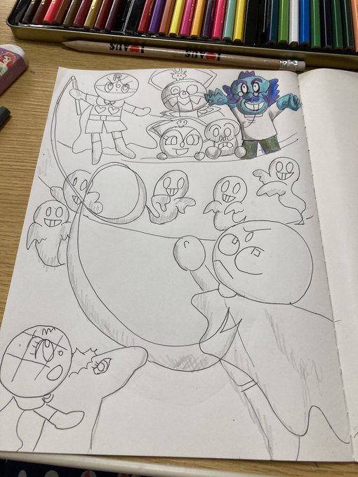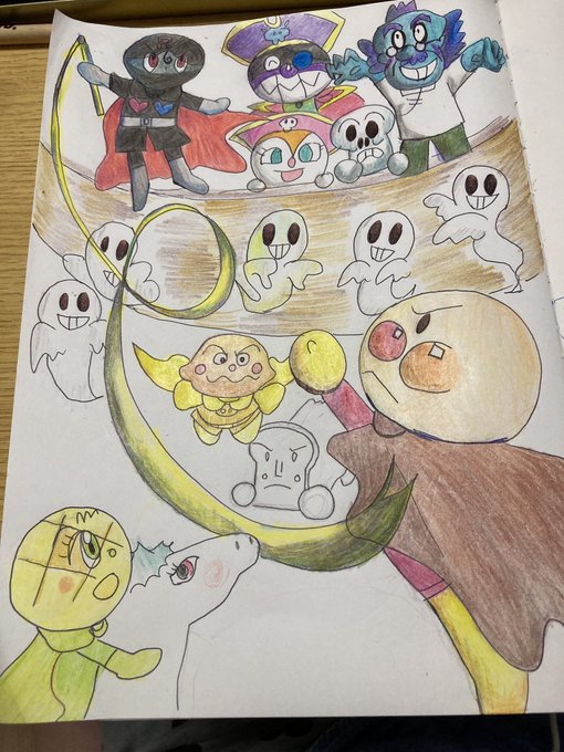0 4 とりあえずここまで進みました! 娘に「カレーパンマンとしょくぱんマンは?」と言われたのでとりあえずカレーパンマンを描き足してます。しょくぱんまんも空いてるスペースに入れる予定ですがうまく入るかなー。 #アンパンマン #色鉛筆 #ゆうれい船をやっつけろ 21/05/19 14:37