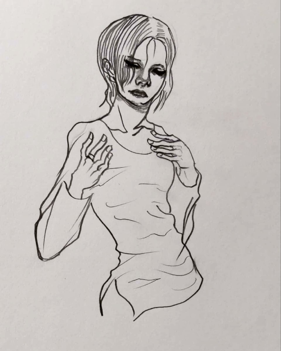 ナナさんのインスタ画像を参考にスケッチ 画用紙にシャープペンシル #絵描きさんと繋がりたい #イラスト好きな人と繋がりたい