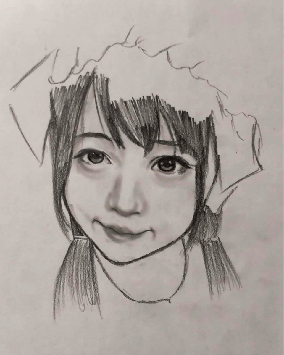 ナナさんのSNSの写真を参考にスケッチ 画用紙にシャープペンシル #絵描きさんと繋がりたい #イラスト好きな人と繋がりたい