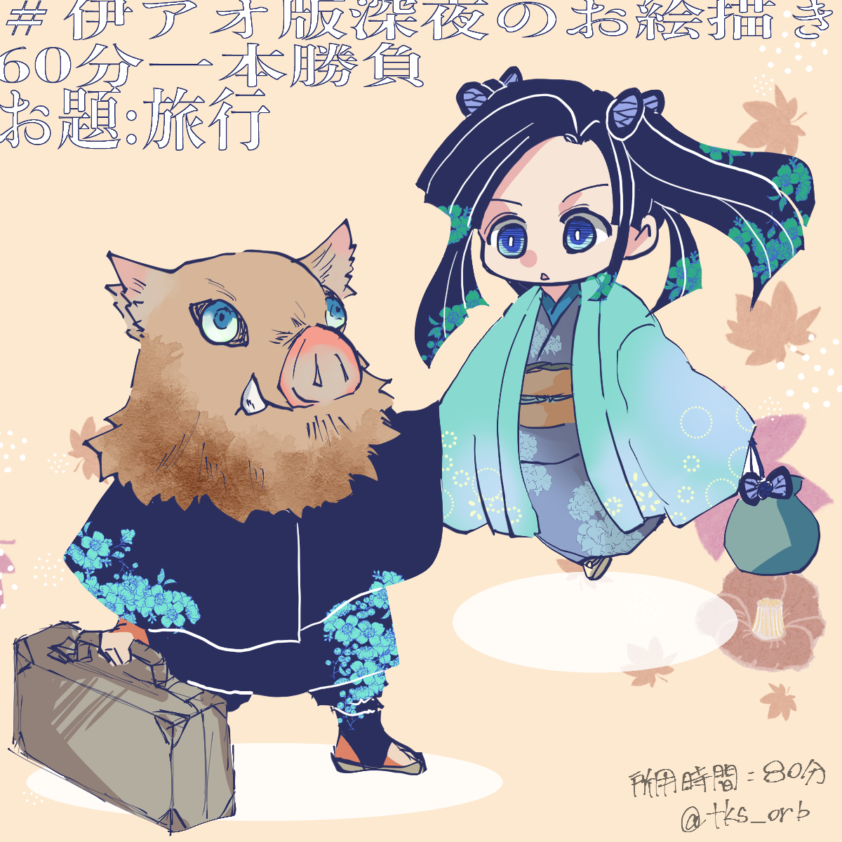 12 117 #伊アオ版深夜のお絵描き60分一本勝負 お題:旅行 時間:80分 ふたりでどこかへ珍道中してほしい 21/09/18 23:27