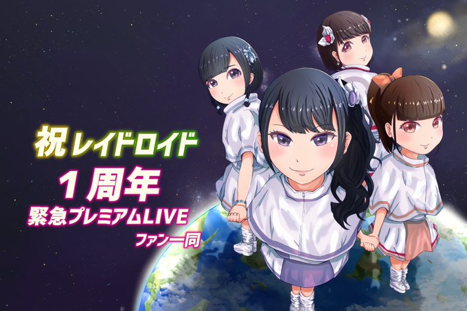 #レイドロイド 緊急プレミアムワンマンライブでメンバーに送るイラスト描かせていただきました!! 上陸して1周年おめでとう🌍🛸 新メンバーも加わってこれからの活躍期待してます☺️