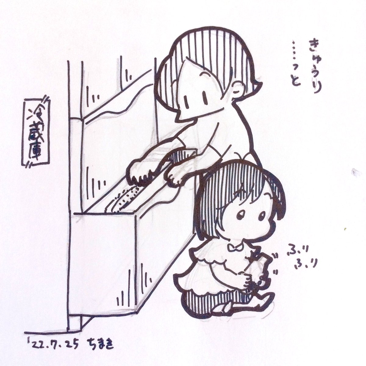 1 23 冷蔵庫の前に娘がいる時に野菜室開けたら、閉められましたw いや、きゅうり出したいねん!! #育児絵日記 #育児イラスト #ママ垢さんと繋がりたい #illust #育児漫画 #コミックエッセイ #漫画が読めるハッシュタグ 22/07/25 12:23