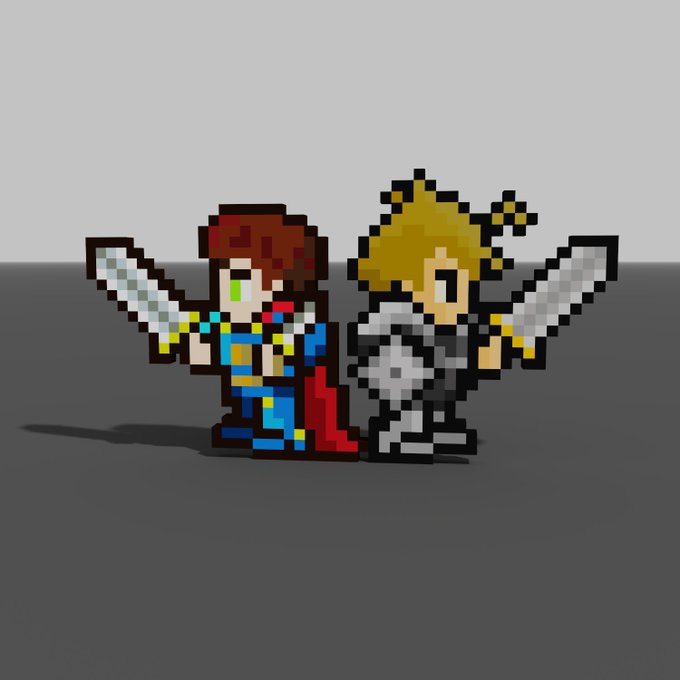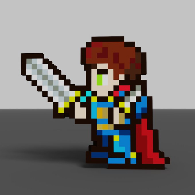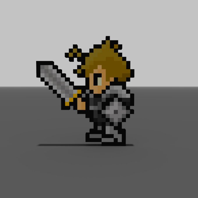 VoxelEdit Training I tried to reproduce the #PixelHeroesX I have. 保有していると二次創作できるってお話だったので、Sandboxのアセット作成の練習がてら再現してみました。思ったよりもFF感というかゲームにでてきそうでビックリ @pixelheroes_nft #sandbox #nft #voxelart #PixelHeroesFanart