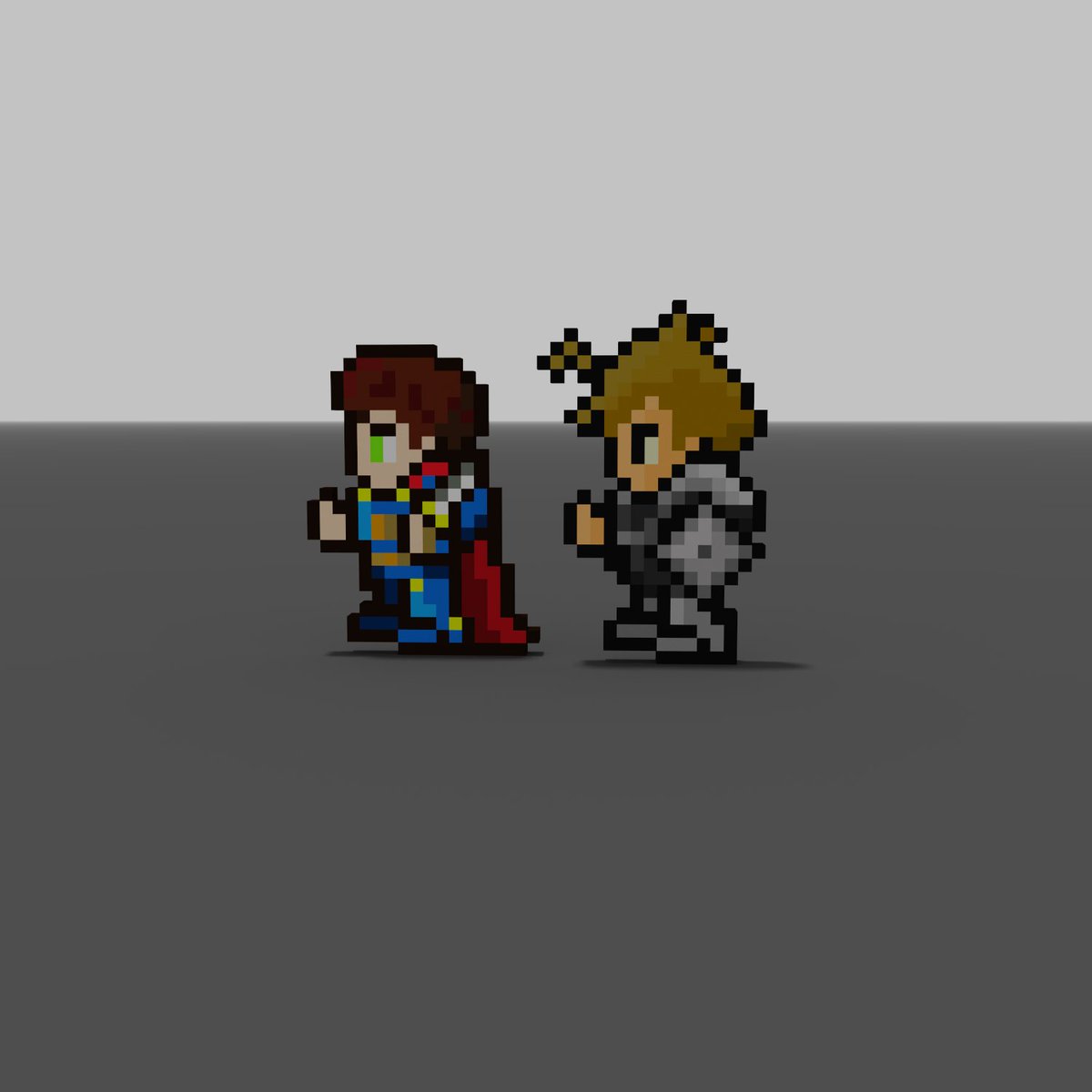 Voxel Editor Training I tried to reproduce the #PixelHeroesX I have. FF5風とFF6の正面風に#1214を再現してみた。どっかで見たような...ラムザ? @pixelheroes_nft #sandbox #nft #voxelart #PixelHeroesFanArt