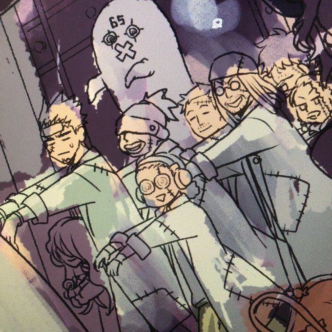 アルマ誕おめでとう〜!!!🎉🥳✨ (しばらく告知絵で皆の誕生日を乗り切ろうとしている) マヨ蕎麦とか手前の単行本19巻のつもりとかあの人が持ってるかぼちゃモチーフは神田の…?とか色々小ネタ詰めなアルマ😊 #アルマ誕生祭2022