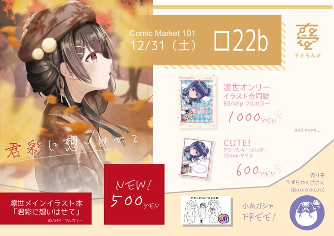 #C101 お品書きになります! 当日売り子に来てくれる、うずらやくざさん(#uzuzuzu_ra )の小糸ちゃんガシャもあるよ! 色紙も当日までに作れれば告知します......! ※新刊の委託予定は今のところありません。 合同誌の詳細はこちら! twitter.com/tland_p/status…