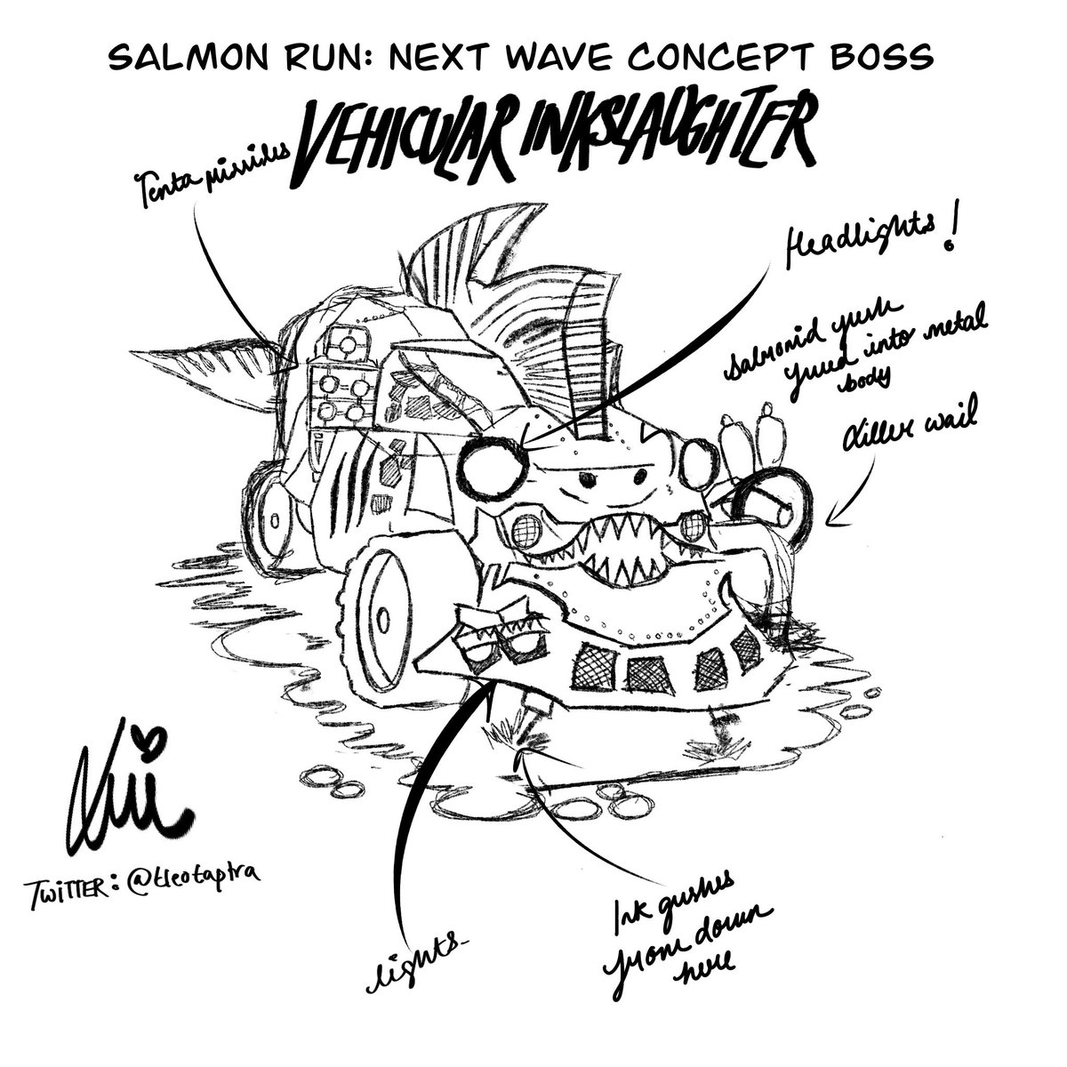 Working on this concept sketch for a “King Salmonid” Xtra Wave type boss in #Splatoon3 Salmon Run: Next Wave. The best name since could come up with is this, but I’m not really satisfied! #Splatober2022 #splatoonart #Splatoon3 #NintendoSwitch #inktober2022