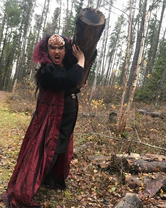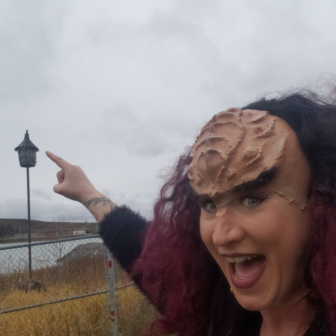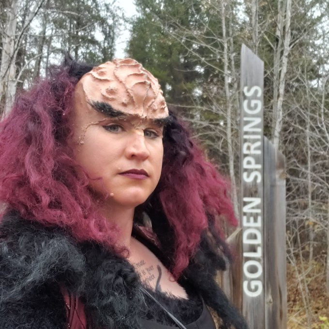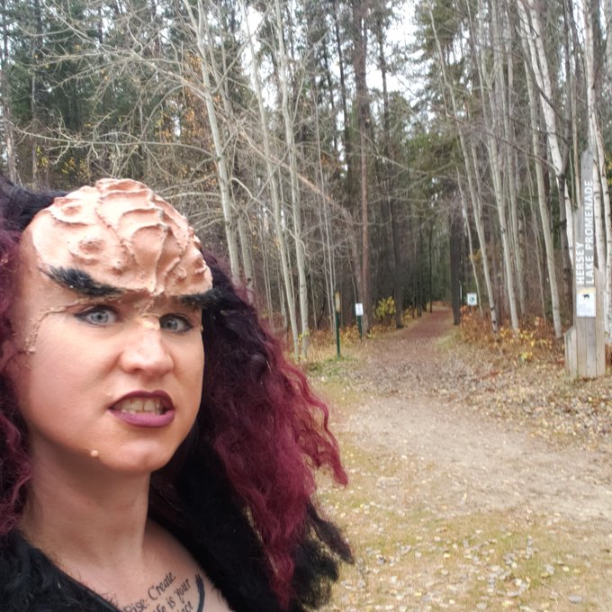 There's a #Romulan sneaking about the rest stop in the #trail behind the oPP station! #HikeMRCA #EverythingIsBetterWithKlingons #ikvcrimsondawn #hiking #outdoortourism #cosplay #klingon #WintergreenConservation #southporcupine
