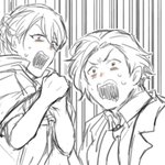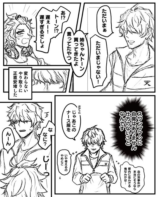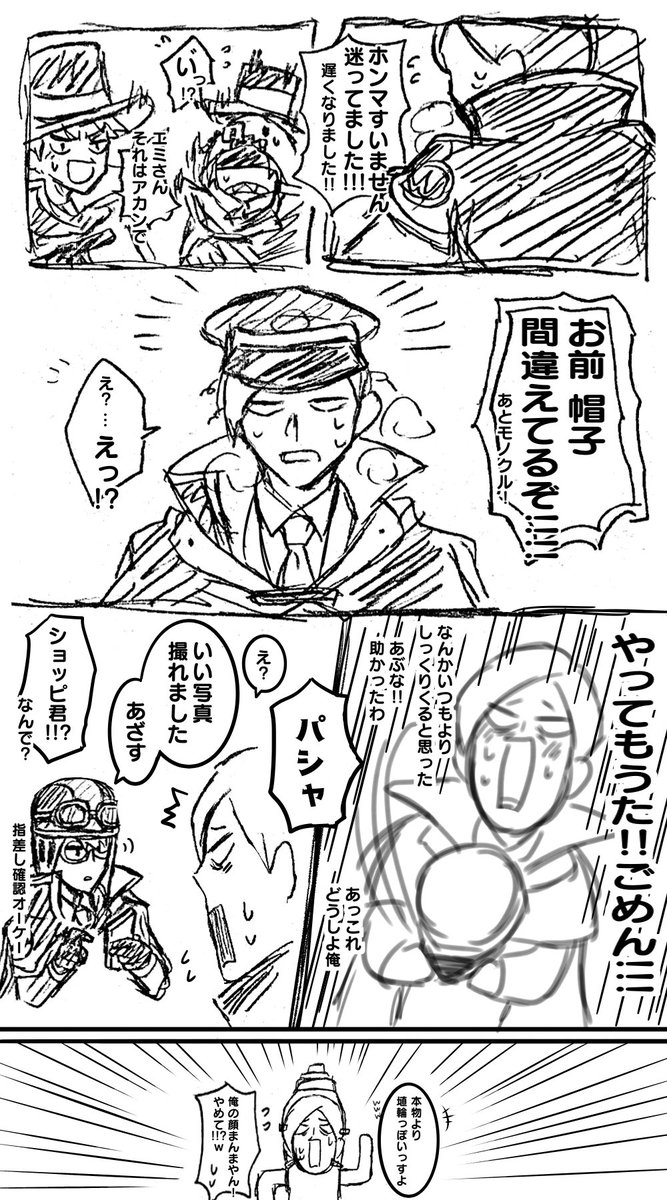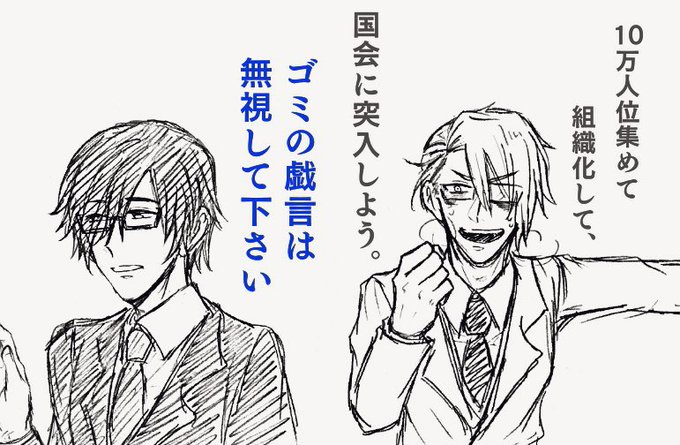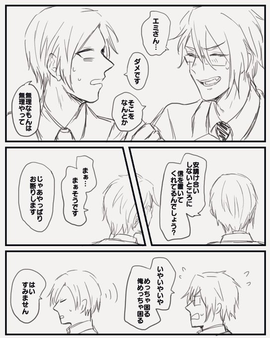 203つく たまにおっさん発言するemさんとそういう時に凄い速さで許さぬツッコミを入れるtn氏という2人好きという落書き