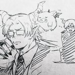 カガ…クふらぱ予告の科eさんを見て先月号や過去編を思い出した落書き きょーじゅは人間関係割り切っていると思っていたのですが人好きなのかな…皆で賑やかにご飯食べるの好きなんだな…!