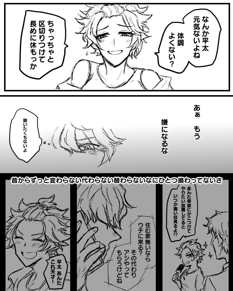 #我々の奇妙な日常 ⚠️誇大妄想⚠️ 2日目の夜以降から最終決戦までの間で失いたくない人や大切になった人達をきちんと認識した騨平太の決意 のようなものが描きたかった