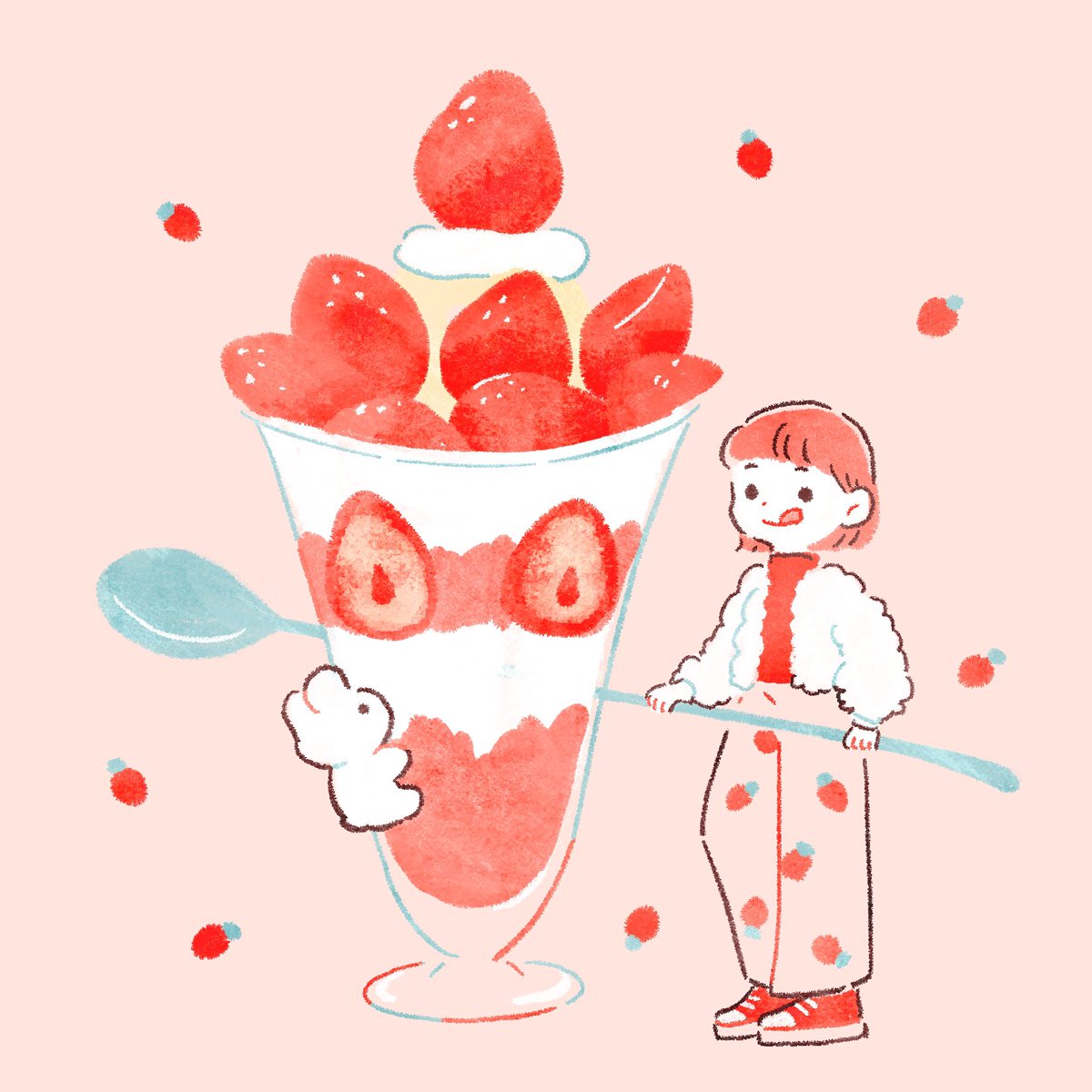 いちごパフェ🍓 #イラスト