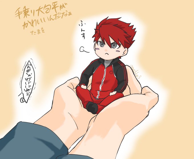 6 18 落書き大+さに(地味に実録) 風邪で体温バグって顔は熱くて手は冷たいことから導き出されたポーズを取るさにわと、看病してくれるカネヒラが思い出したもの 23/03/26 16:22