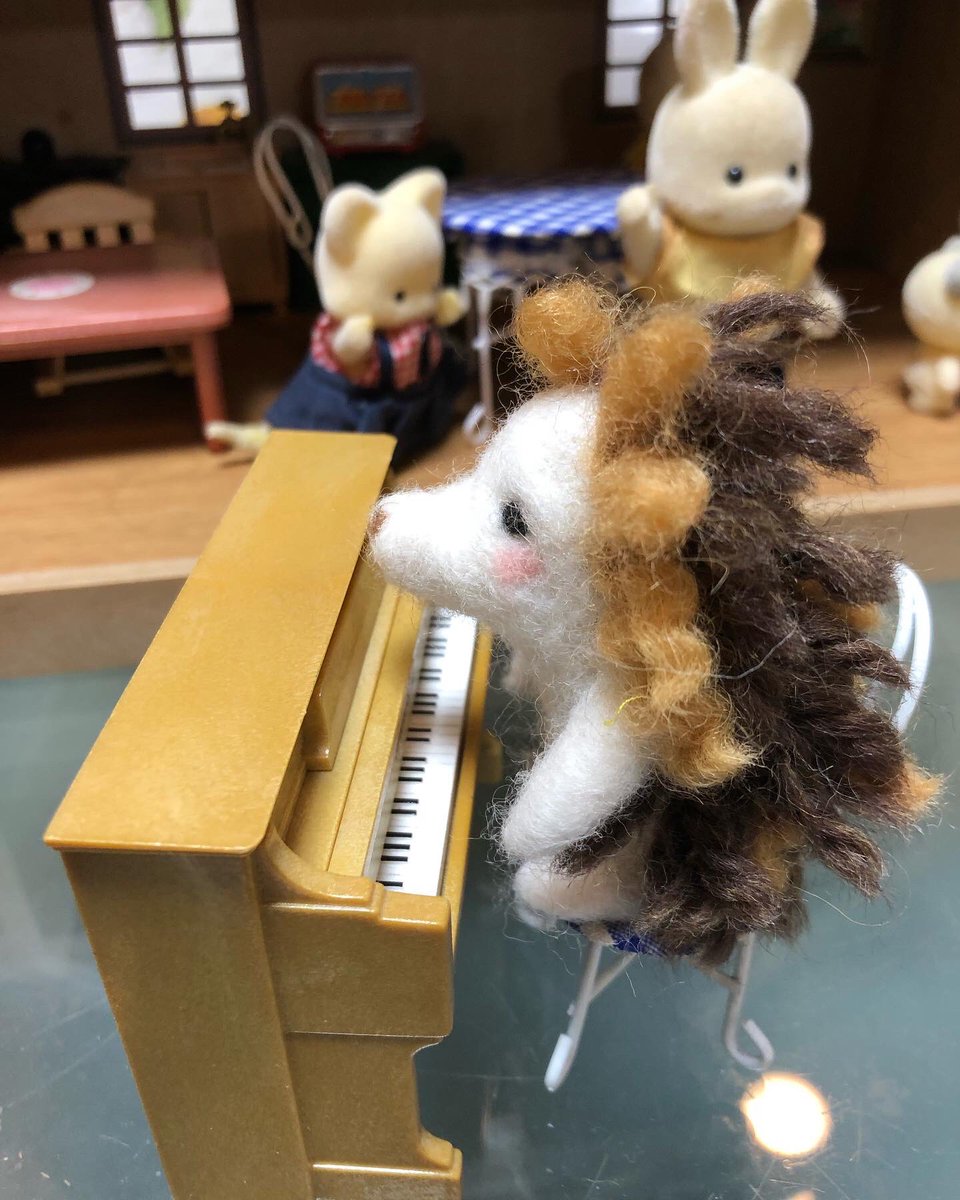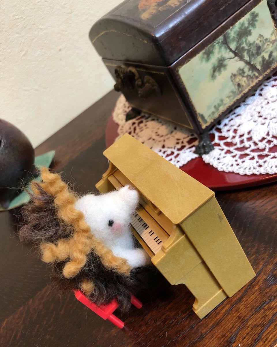 羊毛フェルトで作ったハリネズミ、 買ってくださった方が「ベートーヴェンに似ている♬」と、こんな風に飾ってくれていました✨ 絵本やラジオドラマの世界を立体にした最初の作品『ハリネズミのハリー』数はあまり作れないですが、これからも作品に命をふきこんでいきます。#ハリネズミ #羊毛フェルト