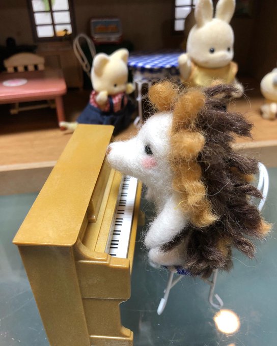 0 6 羊毛フェルトで作ったハリネズミ、 買ってくださった方が「ベートーヴェンに似ている♬」と、こんな風に飾ってくれていました✨ 絵本やラジオドラマの世界を立体にした最初の作品『ハリネズミのハリー』数はあまり作れないですが、これからも作品に命をふきこんでいきます。#ハリネズミ #羊毛フェルト 22/07/12 16:19