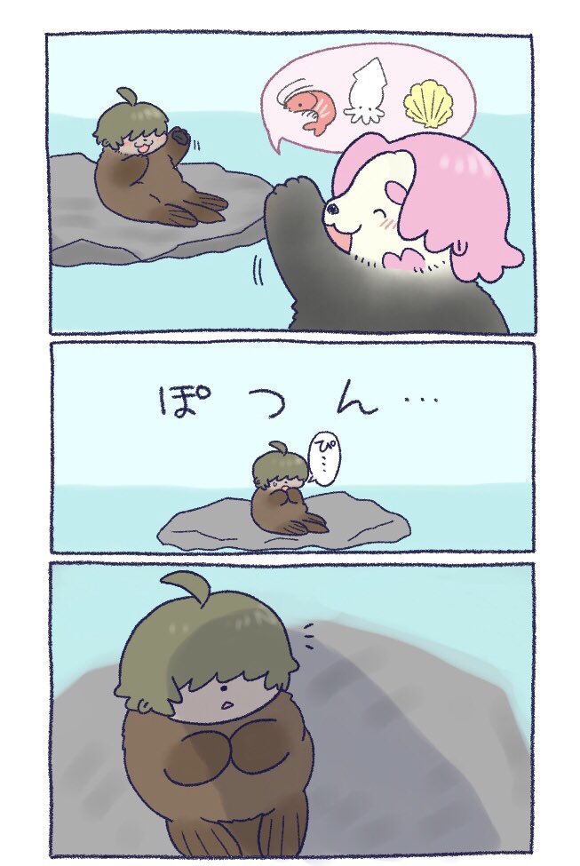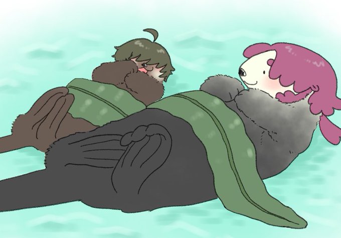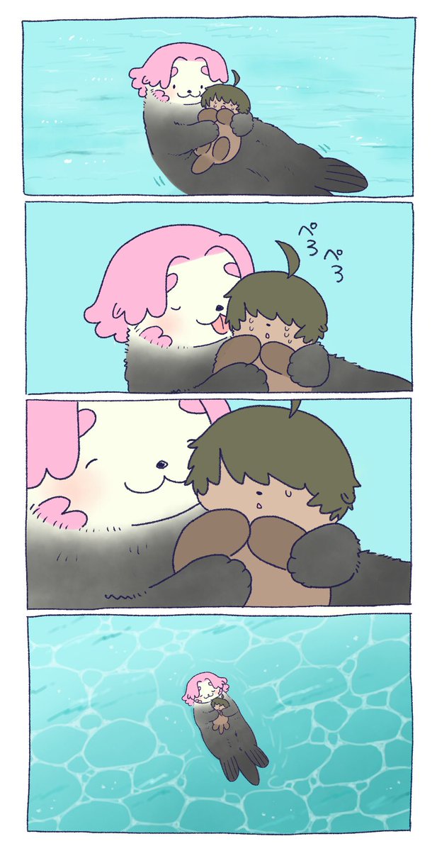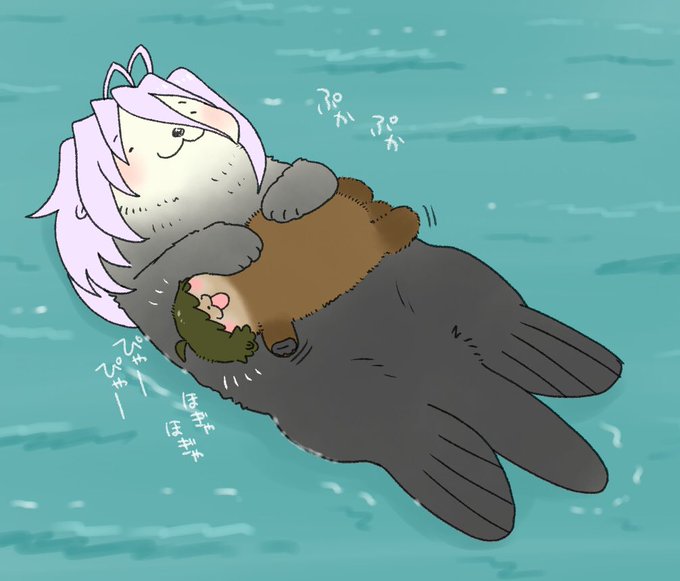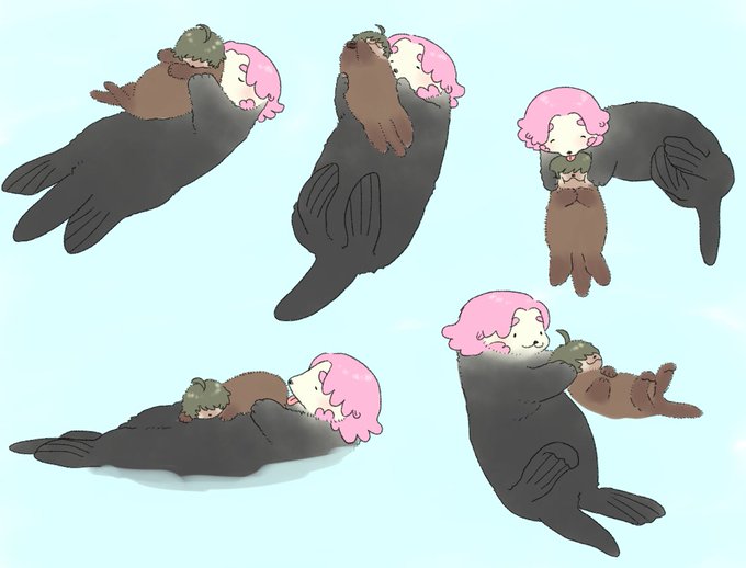 ベビラッコ桑くん仲良くなったよ🦦🦦🦦