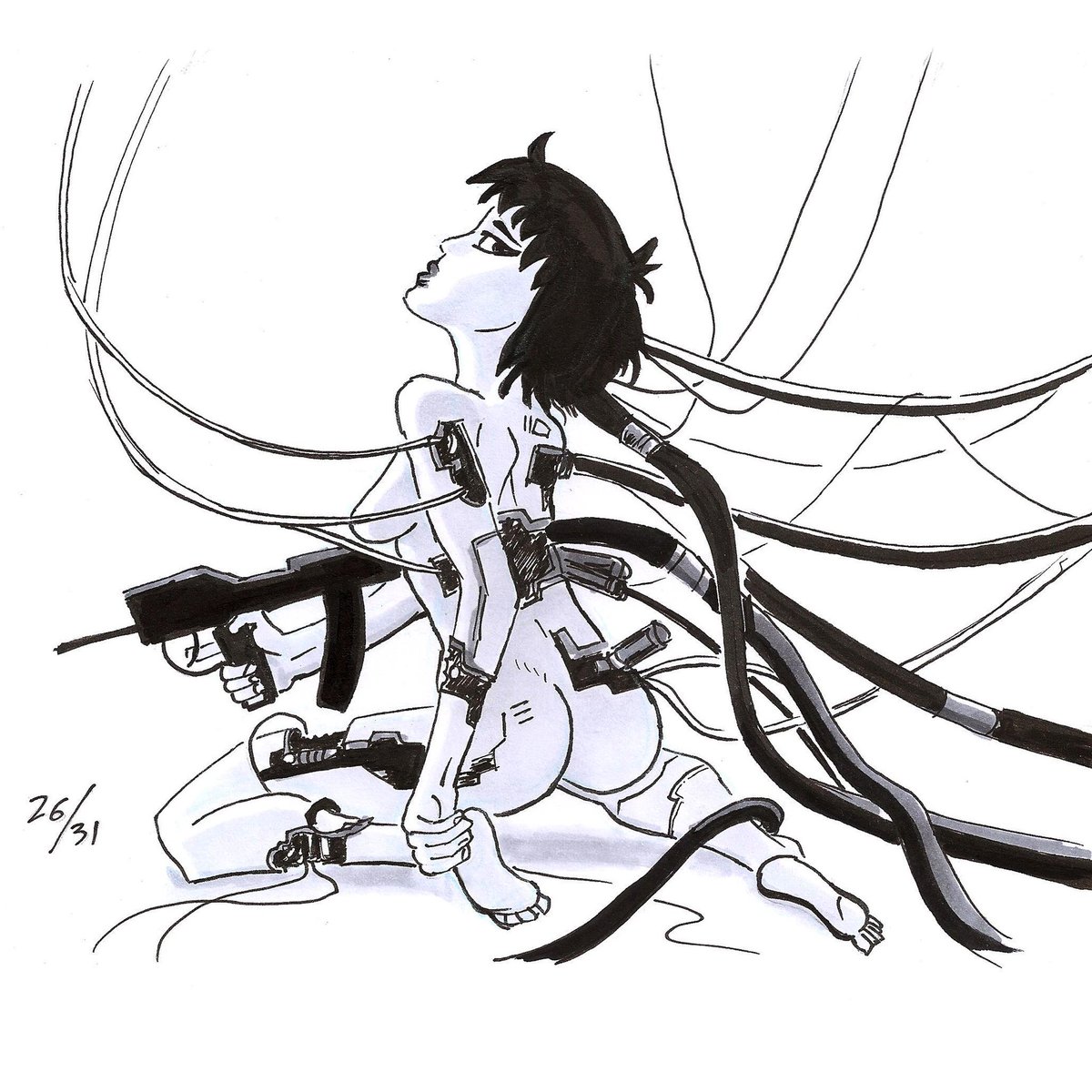 Inktober 2021Day 26:Connect 👻🐚 - #inktober2021 #inktober2021connect #Ghostintheshell #majorkusanagi #animefanart #cyberpunk #animegirl