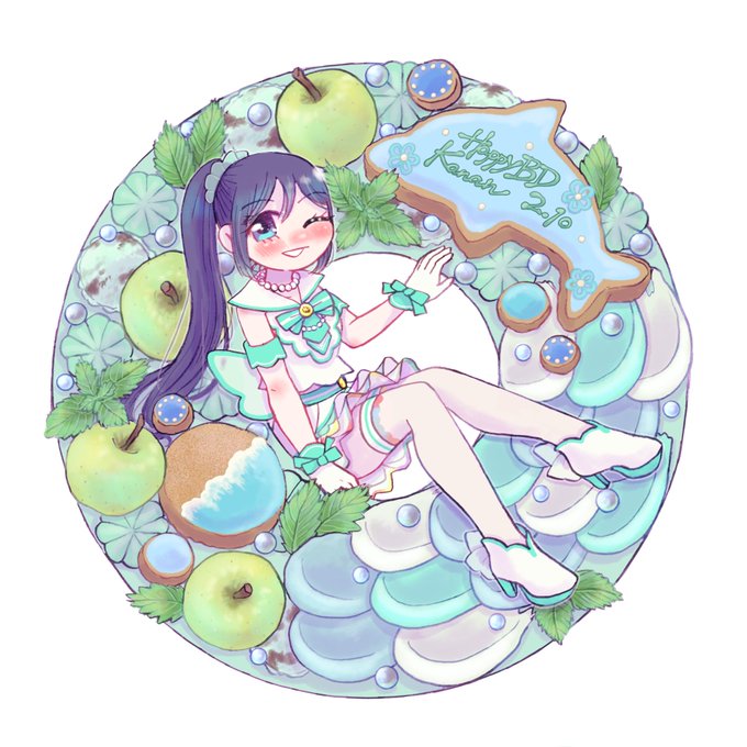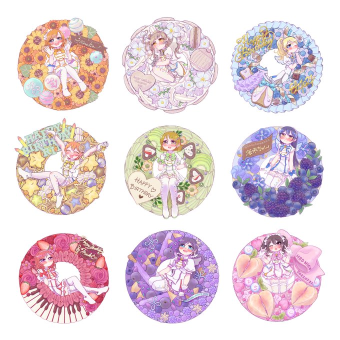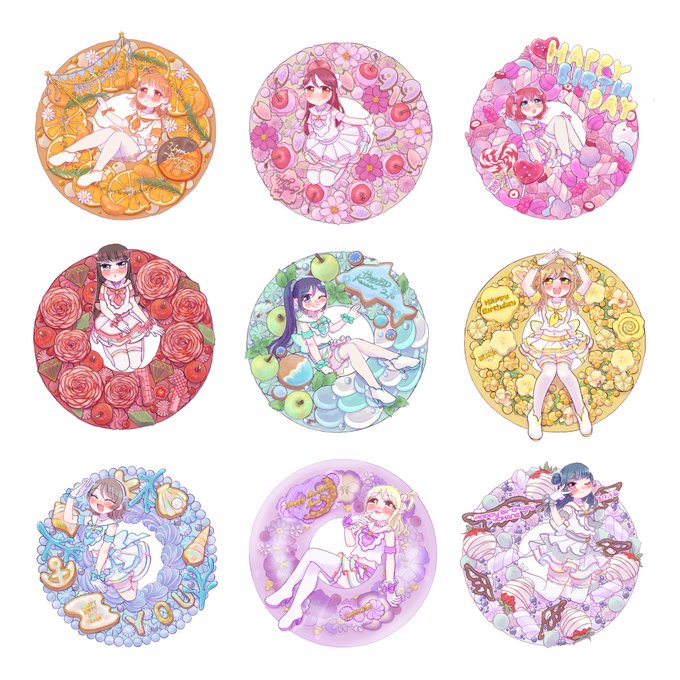 今日の善子ちゃんでAqoursちゃんのお誕生日絵全員揃った🎂今回のリースケーキシリーズめっちゃお気に入り🥳