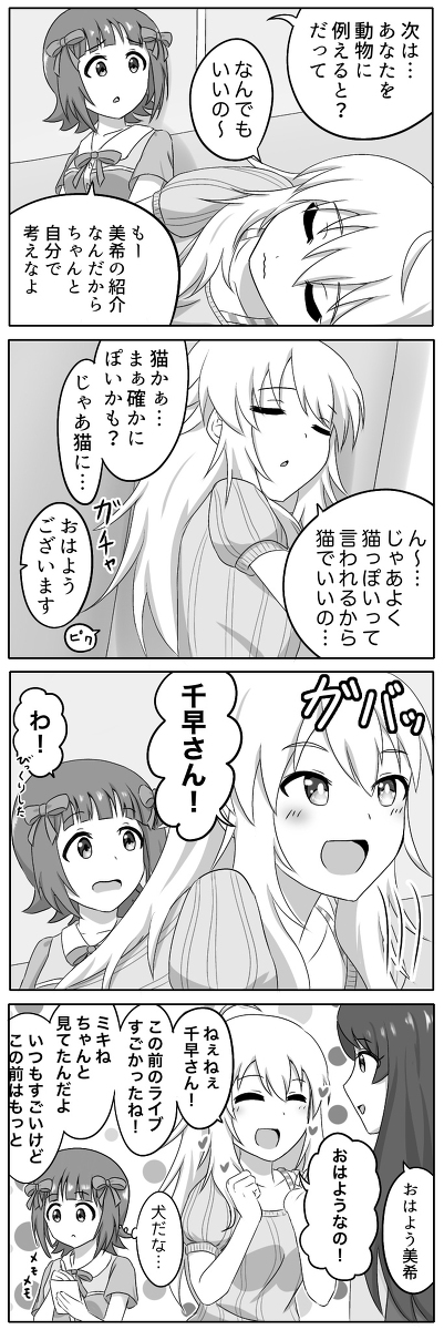 アイマス4コマまとめ #アイドルマスターミリオンライブ! #アイドルマスターミリオンライブ!シアターデイズ #田中琴葉 #天空橋朋花 #宮尾美也 #百瀬莉緒 #馬場このみ #天海春香 #星井美希 pixiv.net/artworks/10552…