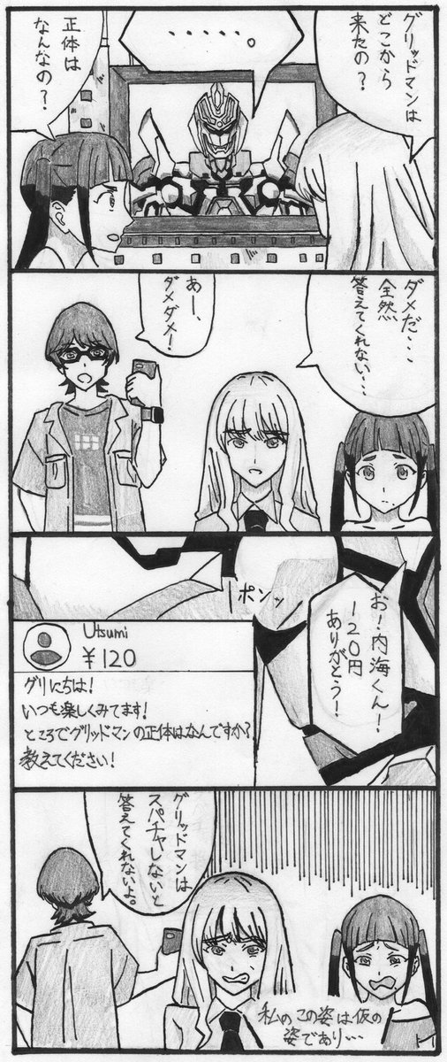 #イラスト #4コマ漫画 #グリッドマンユニバース #イラスト好きな人と繋がりたい グリッドマンユニバースの4コマ漫画です! 初4コマ漫画です! 映画のネタバレにはならないと思います! 字が汚くてすいません。