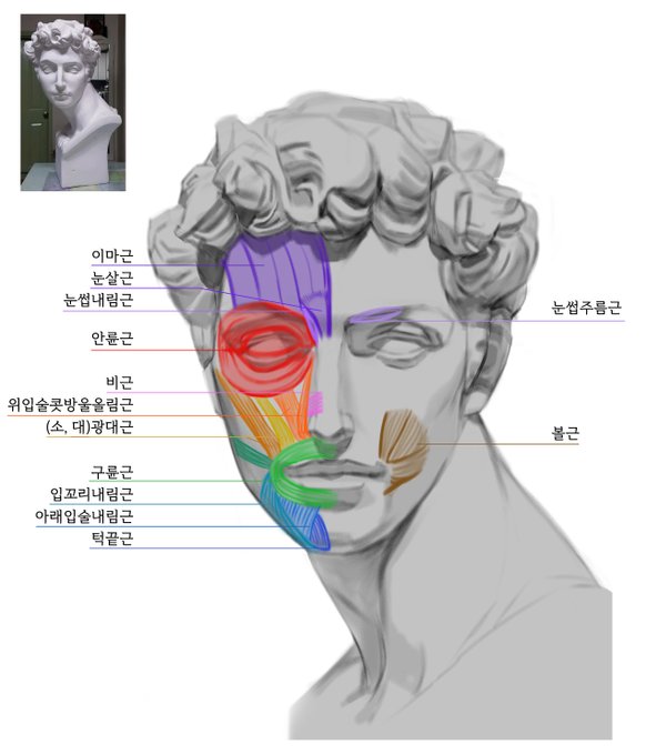 ๋ฐ์ค์ฌ ์ผ๊ตด ๊ทธ๋ฆด ๋, ๋ผ์ ์ผ๊ตด ๊ทผ์ก์ ๋ง์ถฐ ์ฑ์ํ๋ฉด ์ ์ฒด๊ฐ์ด ์ ์ด์์. #์์_๋๋ก์ํ (+์ค๋ฆฌ์ ์์ ์์ฐ)