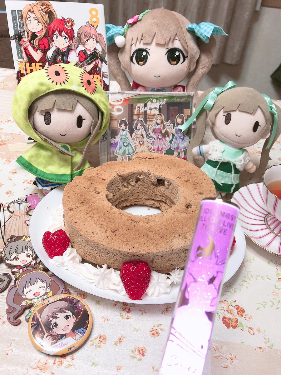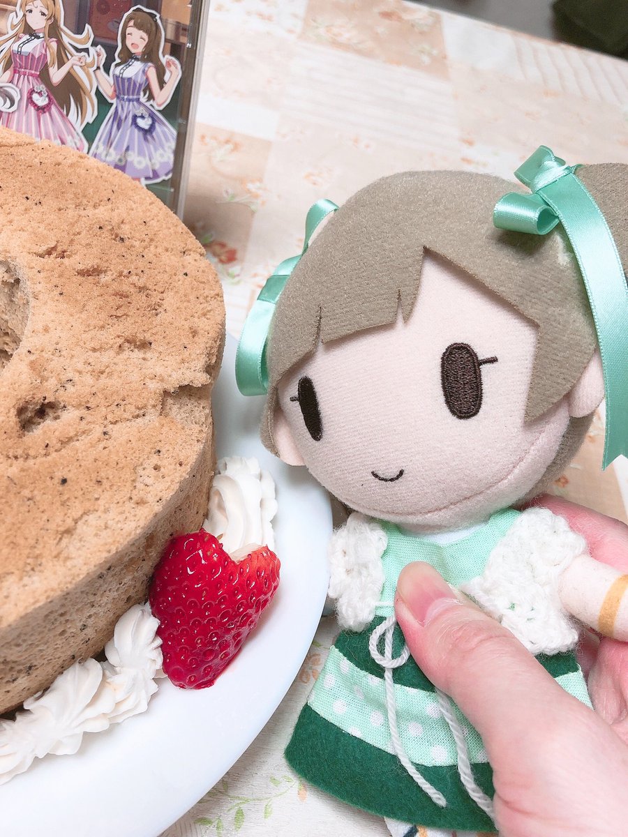 今年も紅茶シフォンケーキでお誕生日パーティーだよ〜〜〜イチゴでハートも作ってみたよ😘🍓 #箱崎星梨花誕生祭2021 #ミリぬい