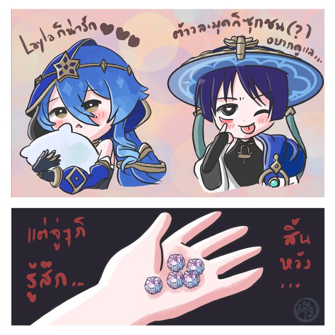 เลือกไม่ถูกเลย มุแง 選べないわ。。。 #GenshinImpactth #scaramouche #Layla #art #draw #原神 #genshinimpactfanart