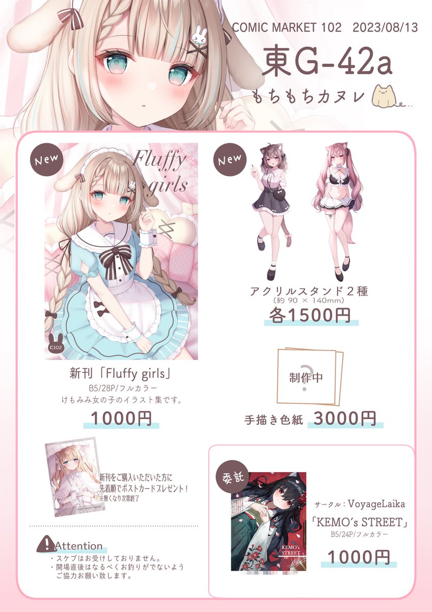 夏コミスペースいただけておりました! よろしくお願いします〜!🙏✨️ あなたのサークル「もちもちカヌレ」は、コミックマーケット102で「日曜日 東地区 “G” ブロック 42a」に配置されました!コミケWebカタログにてサークル情報ページ公開中です! webcatalog.circle.ms/Circle/Map/173… #C102WebCatalog