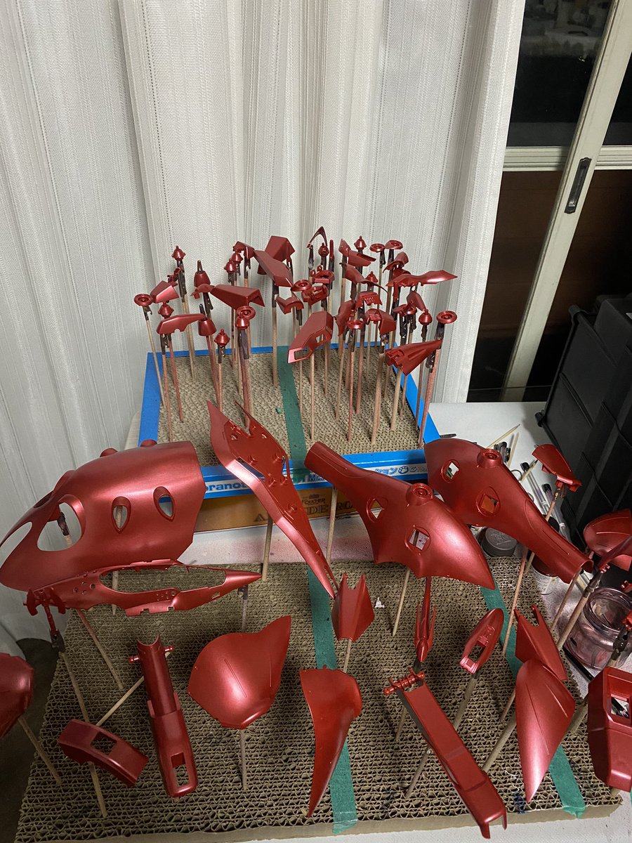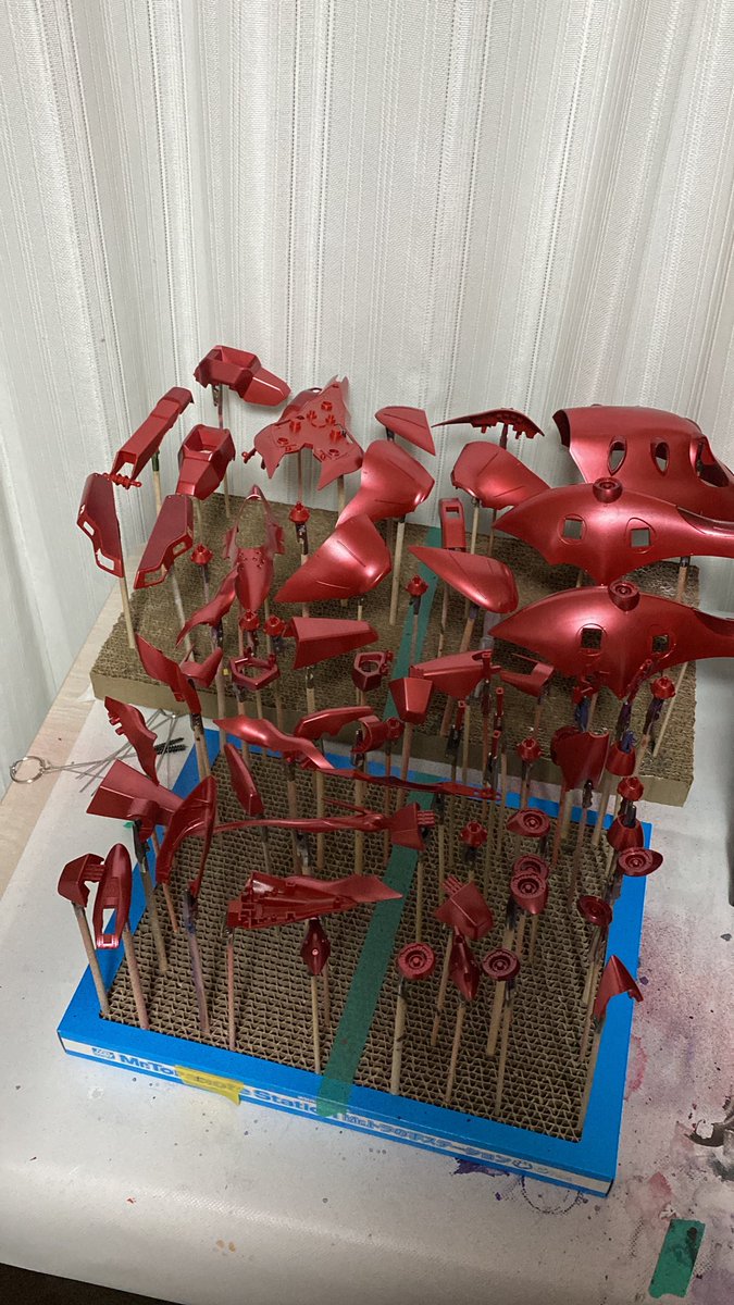2時間以上にわたる死闘がようやく終わりました。 しかしまだもう1回赤塗らないとパーツデカすぎてムラが気になります (´;ω;`) #ガンプラ好きと繋がりたい #ガンプラの画像貼るとRTされると聞いて #ガンプラはどんな自由な発想で作ってもいいんだ