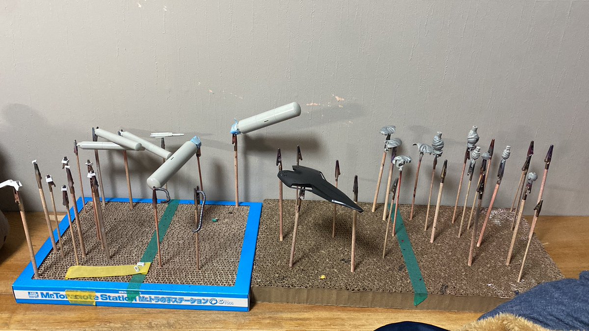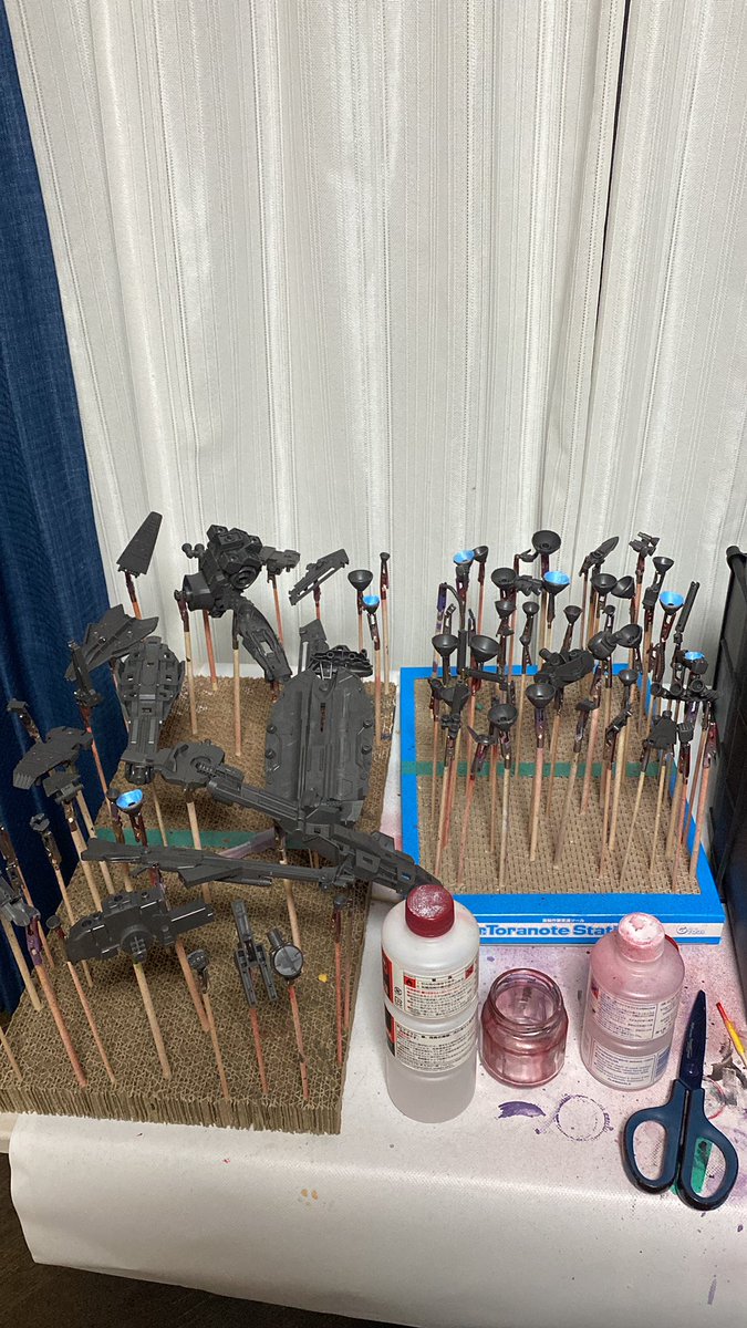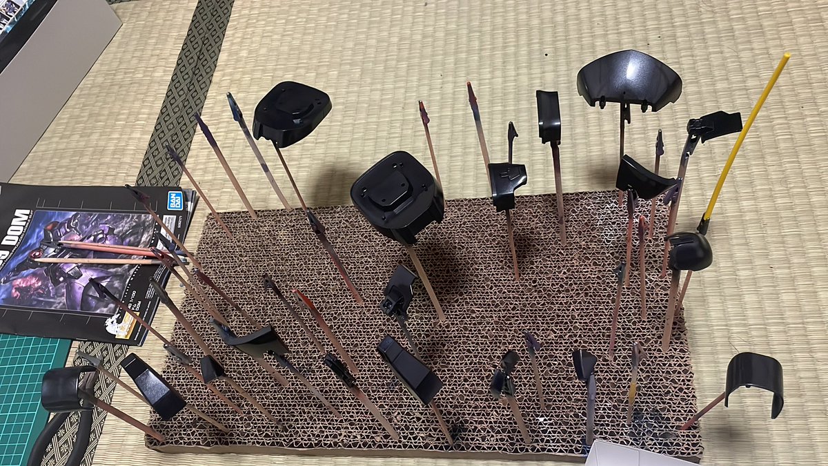 3時間の死闘の末なんとか2回目終わりました( 。ω 。) 肩と首がガチガチになりましたが色はいい感じです笑 明日はマスキングしなきゃ( ˙-˙ ) #ガンプラはどんな自由な発想で作ってもいいんだ #ガンプラ好きと繋がりたい #ガンプラの画像を貼るとRTされると聞いて