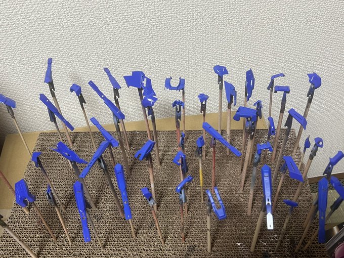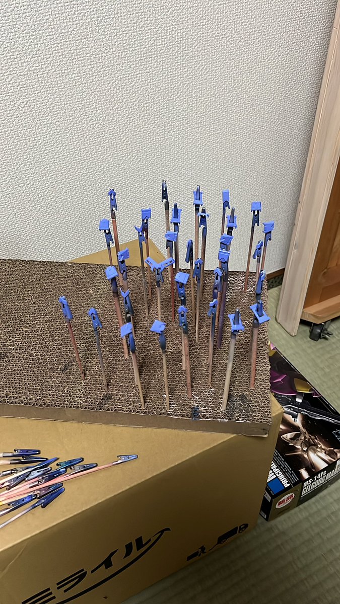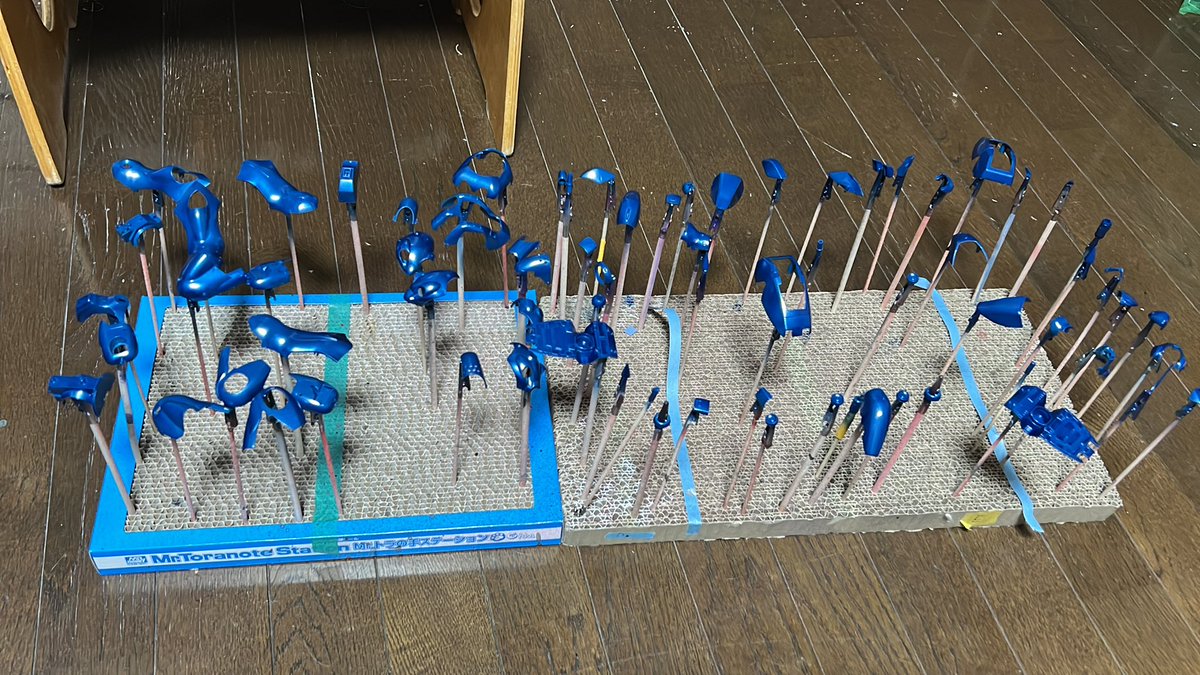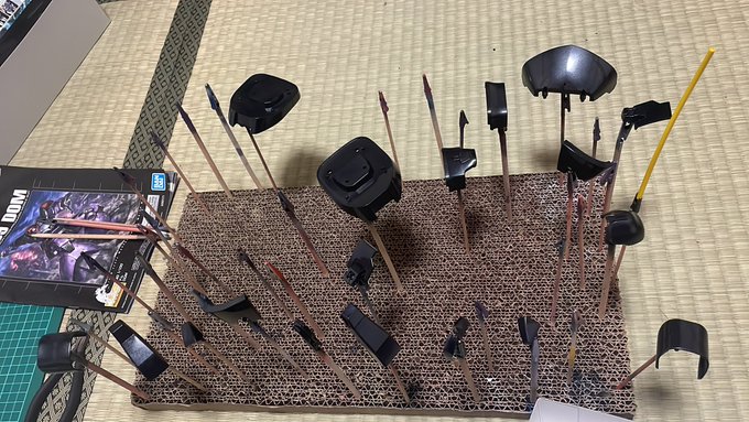 今日はマスキング失敗した奴だけ塗り直ししました(*´ω`*) 明日は人生初クリアカラー使うんですが希釈とか塗り方のアドバイスあればいただければ嬉しいです(´;ω;`) #ガンプラ好きな人と繋がりたい #ガンプラの画像貼るとRTされると聞いて
