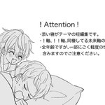 2 15 【6/25 JBFES みか宗新刊サンプル】 東5 ま35a 『きみと夢見る夜のこと』 全年齢/A5/表紙込46p/600円(予定) 添い寝がテーマの短編集です。🍬と🥐が布団の上でお喋りしたりいちゃついたりしてます。 !軸、!!軸、同棲してる未来軸の3本。 ツリー最後の部数アンケにご協力お願いします。(1/4) 23/06/09 22:48