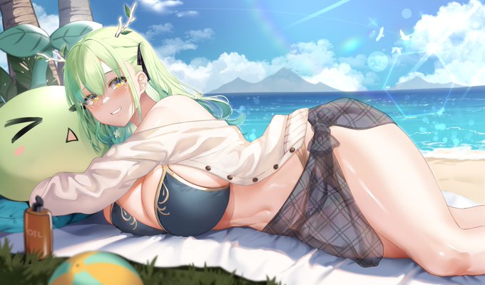 Shiraken at the beach 🏖️ #しらぬえ #絵まる #miko_Art