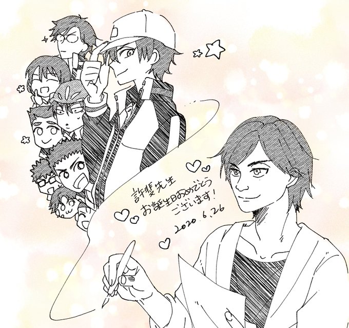 許斐先生が今年も健やかに楽しく過ごせますように!お誕生日おめでとうございます🎉🎉🎉 テニスの王子様に、キャラのみんなに出会えたハッピーに感謝しつつこれからも全力で応援していきます!! #許斐剛誕生祭2020