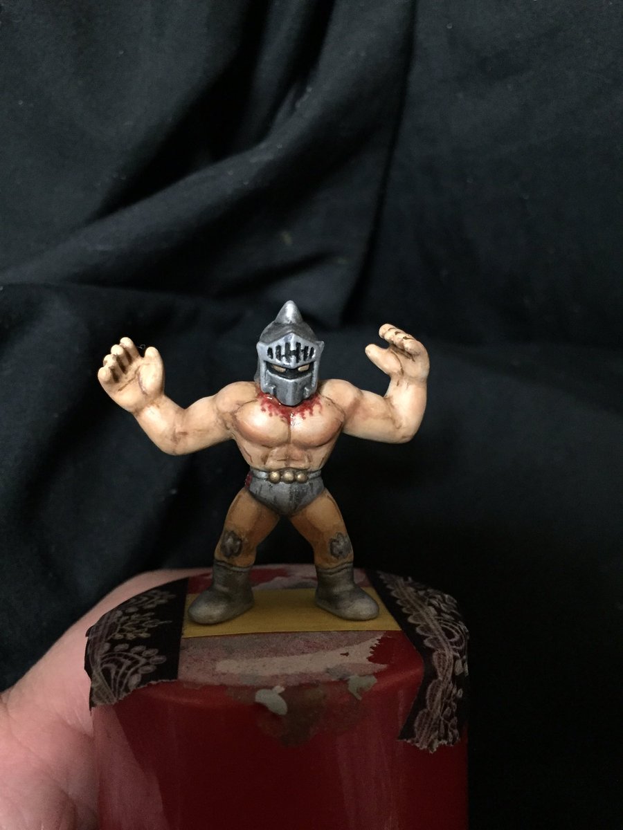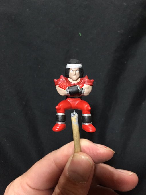 6 74 キン肉マン 完成。今までの倍ぐらいのエナメル塗料を使いました。今回は赤ver.。これは父親の仏壇に飾る為に塗りました。今度、三回忌で実家に帰る時に置いて来ます。#キン消し #キンケシ #キン肉マン 19/02/27 21:42