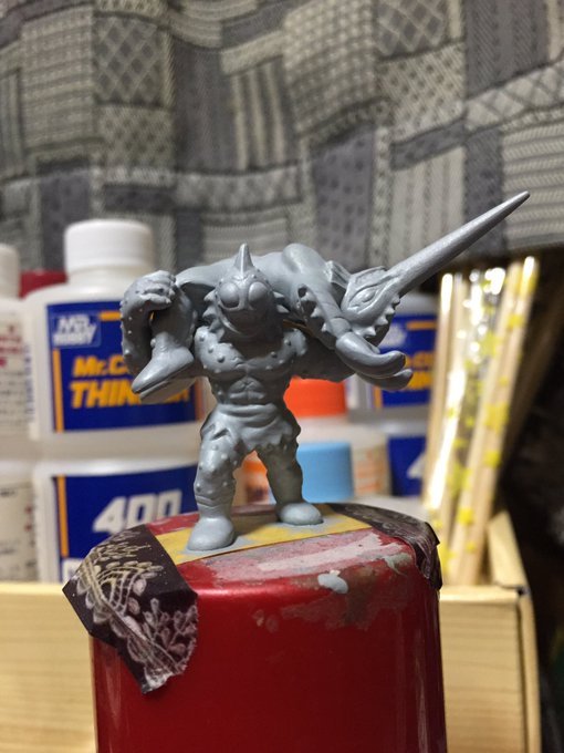 2 26 バッファローマン、ベース塗り終わりました。朝起きたらエナメルで塗ります。 19/01/21 02:28