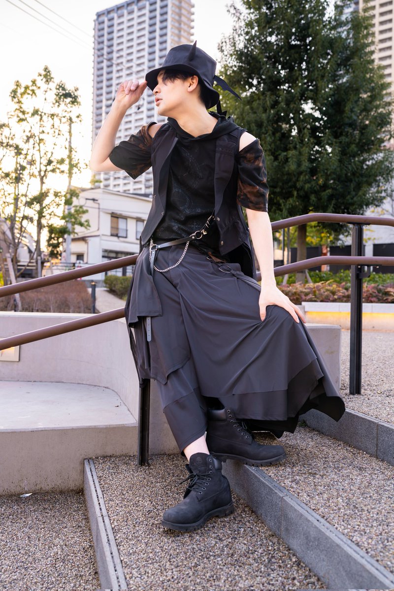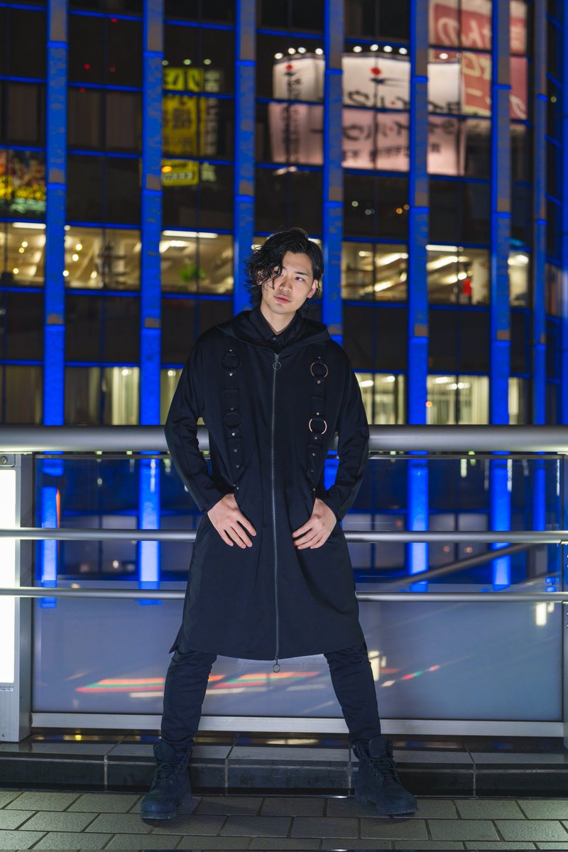 3、4枚目の服はワンピースです! 男性が着ても女性っぽくなくロングコートっぽく着れ、ダブルジップになっているので開け方によって様々なスタイリングが楽しめます 足さばきが気になる場合は4枚目のように開ければ問題なしです! ※着用しているボトムスは私物で別ブランドです⚠ #ozzonjapan