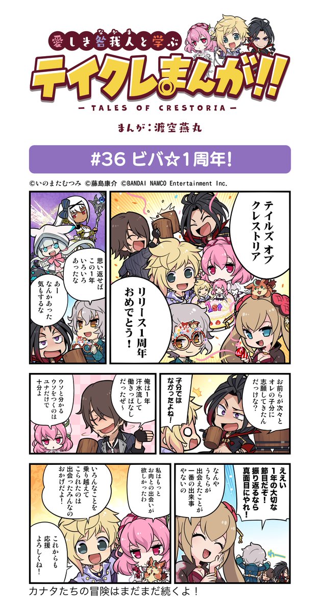 \ #テイクレまんが / 36話「ビバ☆1周年!」を更新しました! 皆様のおかげで「テイルズ オブ クレストリア」は1周年を迎えることができました! ありがとうございます! バックナンバーはこちらから! crestoria.tales-ch.jp/manga 次回は8/3更新です! #テイクレ
