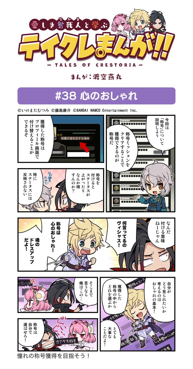 \ #テイクレまんが / 38話「心のおしゃれ」を更新しました! ミッションをクリアして、自分にピッタリの称号をゲットしましょう♪ バックナンバーはこちらから! crestoria.tales-ch.jp/manga 次回は8/31更新です! #テイクレ