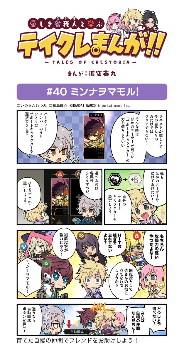 \ #テイクレまんが / 40話「ミンナヲマモル!」を更新しました! 自慢の仲間たちをサポートキャラクターに設定して、他のユーザーの手助けをしよう♪ 迷ったら自動編成ボタンをタップ! バックナンバーはこちらから! crestoria.tales-ch.jp/manga 次回は9/28更新です! #テイクレ