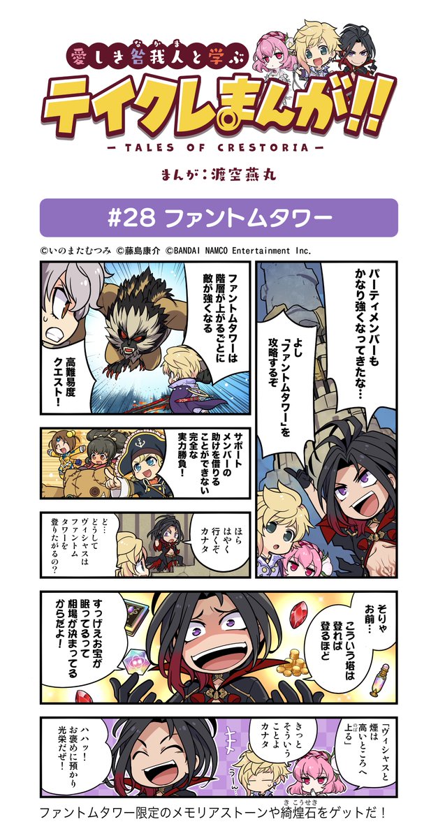 \ #テイクレまんが / 28話「ファントムタワー」を更新しました! パーティーメンバーが強くなったら、ファントムタワーに挑戦しましょう! 限定のメモリアストーンや綺煌石をゲットできますよ♪ バックナンバーはこちらから! crestoria.tales-ch.jp/manga 次回は4/13更新です! #テイクレ
