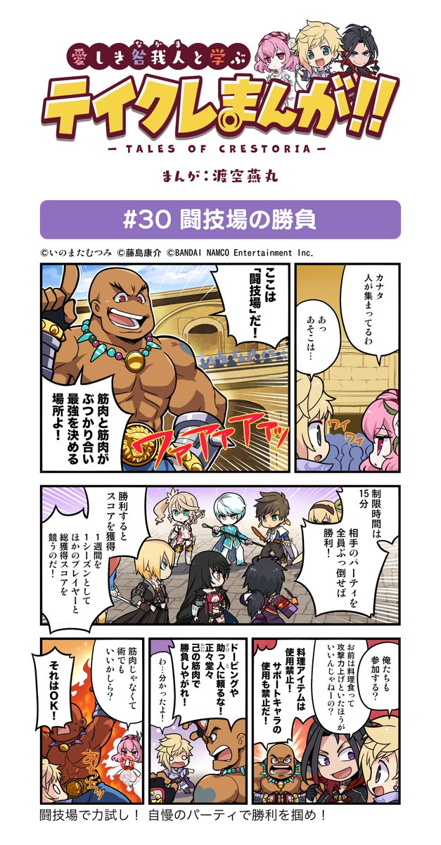 \ #テイクレまんが / 30話「闘技場の勝負」を更新しました! 育成したパーティーの腕試しには闘技場がオススメ! 他のプレイヤーとスコアを競って高みを目指しましょう♪ バックナンバーはこちらから! crestoria.tales-ch.jp/manga 次回は5/11更新です! #テイクレ