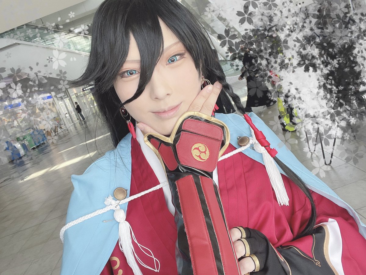 今日はコス初めで桑名〜 自撮り棒忘れたのでめいいっぱい腕を伸ばしてもこの距離になる…クッ…… 主と初期刀と一緒のやつはまた後であげる〜