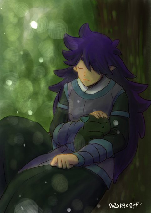 7 16 お題箱から フーシー描きました。 穏やかに過ごす🐈⬛🌳 20/12/31 00:39